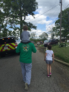 On Sunday we were able to sleep in until almost 10. It felt glorious!! After getting the grocery shopping out of the way and putting chili in the crockpot, we decided to go for a ride and headed for the Dari Bar in Silver Grove. If you have not gone, go now!! I introduced it to Nick years ago, and it is his favorite spot to get a good hamburger and the kids ice cream. They only take cash though. The Dari Bar is very old school which is part of its charm. They take your order at a window and the girls write down your order and add up your total by hand. NO CALCULATORS!! That takes skills. My math is not that good lol. I have been going to the Dari Bar since I was a little girl. My mom grew up in Fort Thomas and my grandparents still lived there. After our weekly visit to see them, my dad always stopped there so we could get a treat. I think our favorite thing was ice cream with sprinkles and a "face". I love continuing this tradition with my family each spring and summer. They close in late September and open again around Easter. On our way home, I was looking at facebook and saw that Nick's fire dept had a fire. The kids kept asking to see it. They are like their father and love anything fire. They "had' to see the fire. We knew it was probably out but took them anyway. Sure enough, it was out. But they did not care. They loved checking it out. Nick had to mow and the kids were begging me to take them to the park. It was too chilly for me, but they wouldn't stop. I broke down and told them we could go but we were only staying for 30 minutes. 30 minutes turned into an hour. But it was a good way to end the weekend.